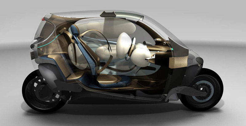 Este vehículo nos ofrece las ventajas tanto de un coche como de una motocicleta en un mismo concepto. Además de su sorprendente plus de seguridad con su sistema de giroscopios, lo cual le permite no volcar gracias a una tecnología aeroespacial, su interior está protegido con el sistema de bolsas de aire para minimizar los daños en caso de impacto (y también cuenta con cinturones de seguridad).