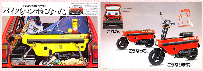 Los japoneses siempre se han caracterizado por maximizar la utilidad de todo y Honda creó a principios de los años 80 una moto plegable que podía meterse en un maletero de un auto muy pequeño: la Honda Motocampo.