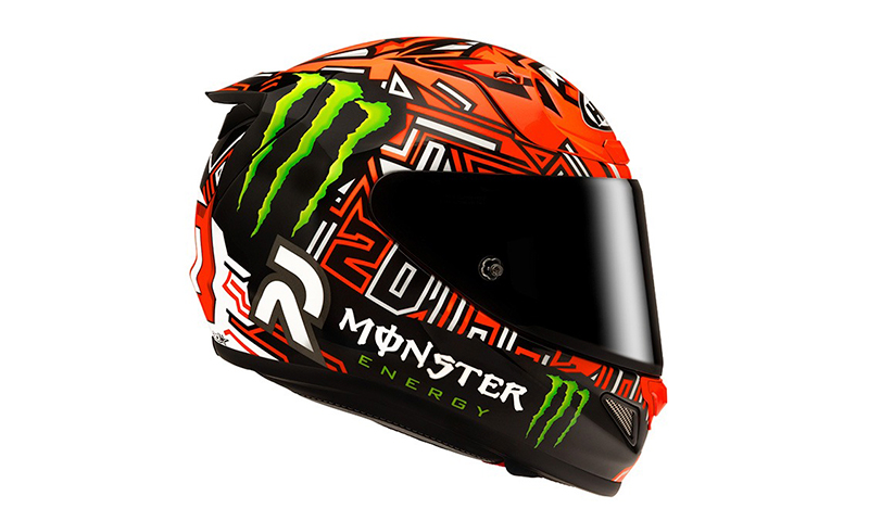 Con su gráfica “Diablo” en tonos intensos de rojo, negro y blanco, este casco refleja la personalidad del campeón francés: agresivo, veloz y con un estilo inconfundible. Cada línea y detalle fueron pensados para proyectar actitud sobre la pista y en la ciudad.