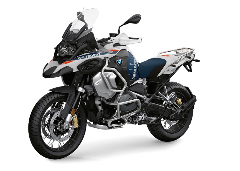 • Novedad: GS Trophy en Gravity blue metalizado con llantas de radios cruzados, asiento Rally, parabrisas deportivo, protectores de radiador, protectores de cuadro, reposapiés Enduro y más. La edición „40 YEARS GS“ y Blackstorm metalizado ya no están disponibles.