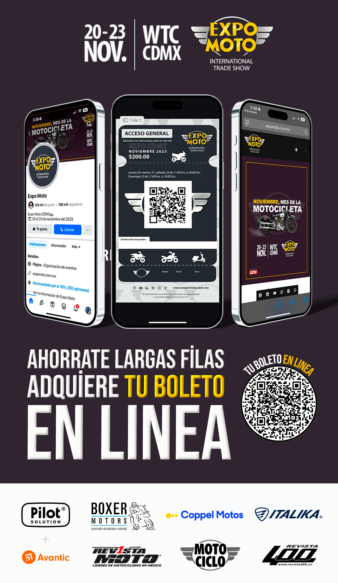 2016-05-28: Este correo electrónico y, en su caso, cualquier fichero anexo, contiene información exclusivamente dirigida a su destinatario. En caso de haber recibido este correo electrónico por error, se ruega notifíquese inmediatamente esta circunstancia a info@motociclo.com.mx Al mismo tiempo EXPO MOTO le recuerda que sus datos forman o formarán parte de un fichero registrado, propiedad de la EXPO MOTO. Usted tiene derecho de acceso, oposición, rectificación y cancelación a estos datos que deberá ejercer mediante escrito a la dirección anteriormente citada.Expo Moto es una marca registrada. Los logotipos de patrocinadores fueron proporcionados por la misma marca. Queda prohibido el uso de las imágenes difundidas en este correo. © 2013 EXPO MOTO Todos los derechos reservados.