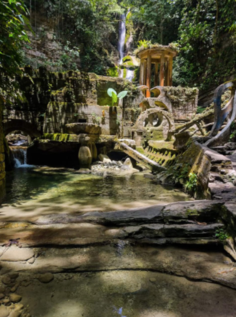 Debido a sus características orográficas, Xilitla es un sinfín de escaleras de concreto y piedra cuyo objetivo específico es conectar con una casa o con un comercio; contrario a esto, las escaleras que vemos en El Jardín Escultórico Edward James, Las Pozas de (atractivo primordial del poblado) son todas de concreto, pero inconclusas, es decir, ascienden sin desembocar en lugar alguno, sin tener un propósito imaginable.
